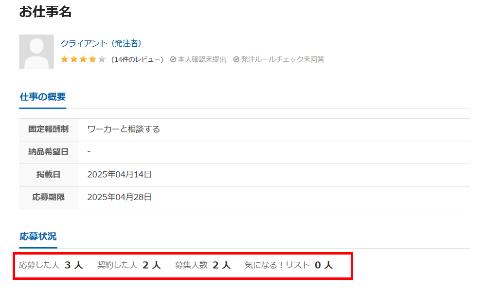 ・「募集人数」とは、クライアントが仕事発注時に設定した契約予定人数です。